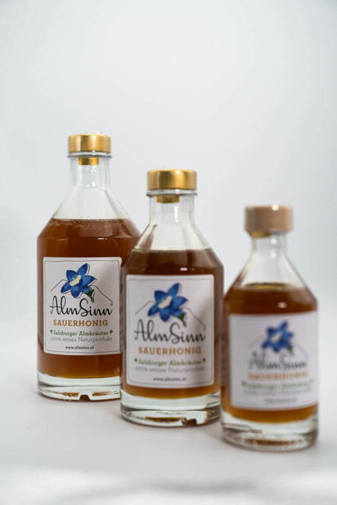 In den Genussvariationen ist der AlmSinn Sauerhonig ebenso mannigfaltig wie in seiner Verwendung als Fitmacher: Pur oder gespritzt als Erfrischungsgetränk, als isotonisches Getränk für Sportler, als Immunstärker, Darmfit-Macher oder zum Abrunden von Salaten, Saucen und Suppen.