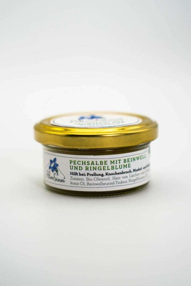 Traditionelle Anwendung von Pechsalben allgemein: als Wund- und Heilsalbe oder als Brustbalsam bei Husten. Bei stumpfen Verletzungen wie Prellungen, Knochenbruch oder Quetschungen. Hilft bei Gicht und Rhema